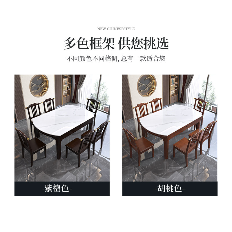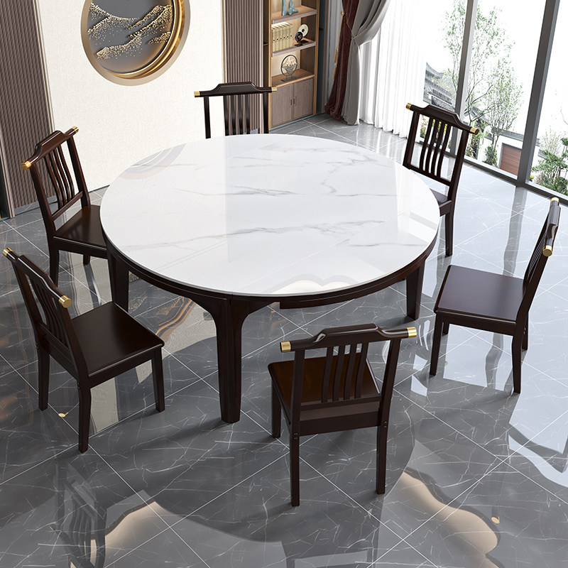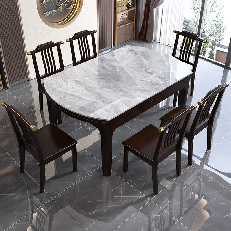 New Chinese-style all solid wood bright slate dining table and chair combination variable square and round dual-purpose telescopic dining table home small apartment