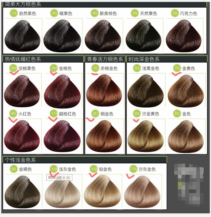7G Golden Yellow 3N Dark Maroon 8G Light Gold 9R Fire Red 8A Golden Brown 5B Chocolate Color 8G Copper Gold 10A Light Gray Gold 4B New Beauty Brown 4N Natural Maroon 1N Natural Black