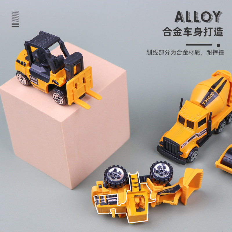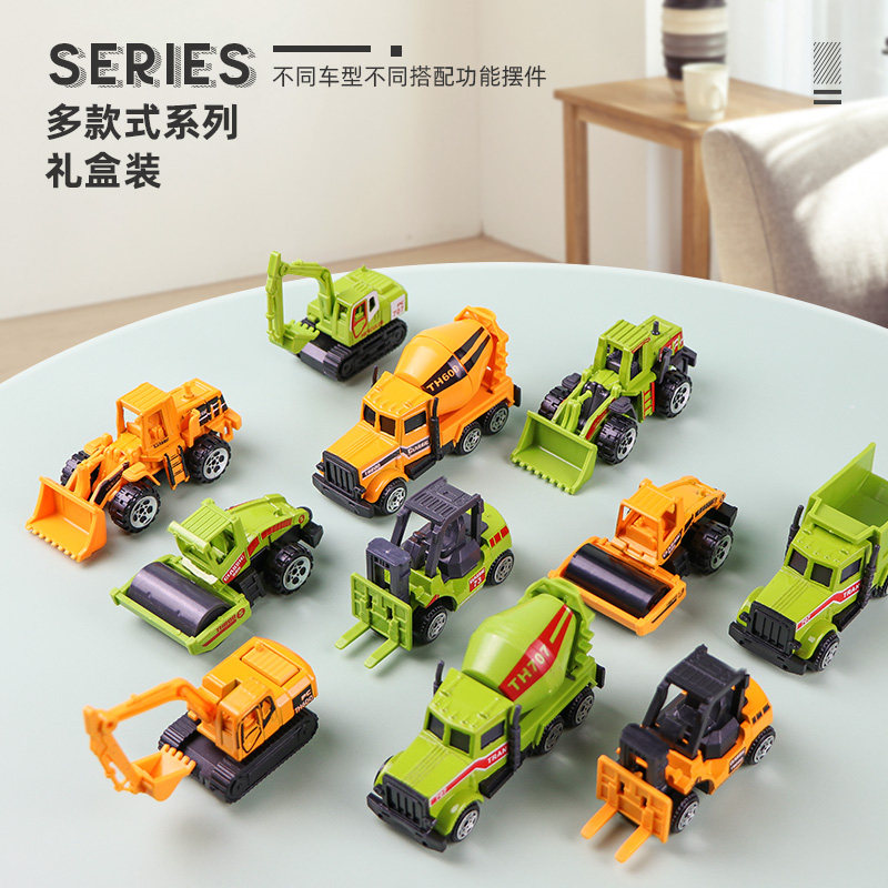 Yellow small engineering car 5 only (new gift boxed) alloy cleaning car 4 only Alloy Cop Car 4 only Alloy Fire Truck 4 only Alloy Engineering Car 4 Only Green Farmer Small Engineering Car 5
