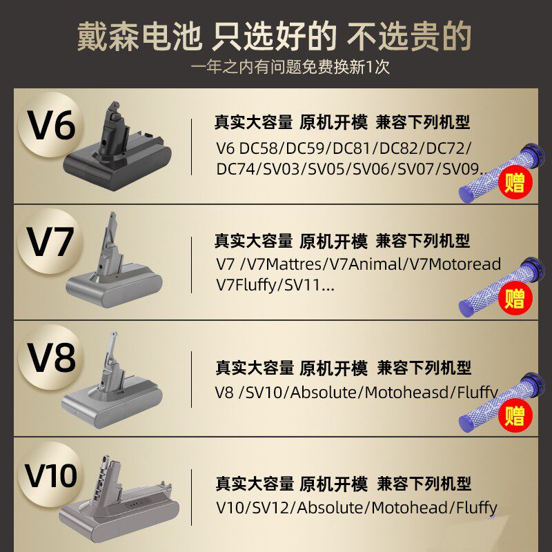 Adapted dysonV8 battery Dyson vacuum cleaner non-original lithium battery V6 V6 V7 V10DC58 62 72