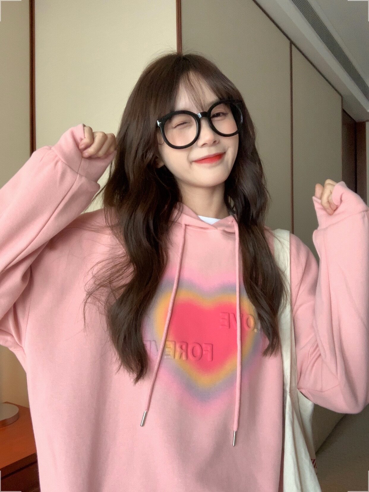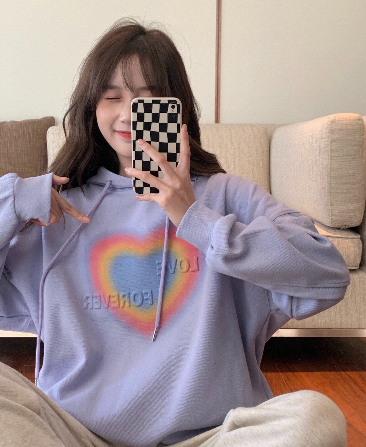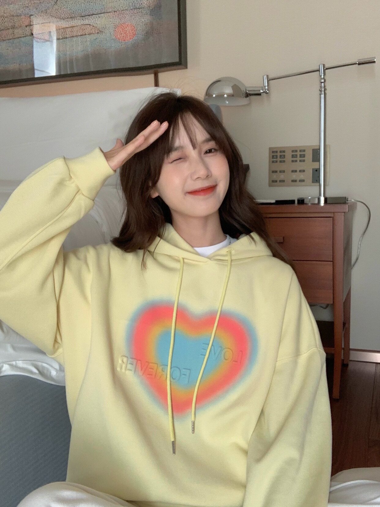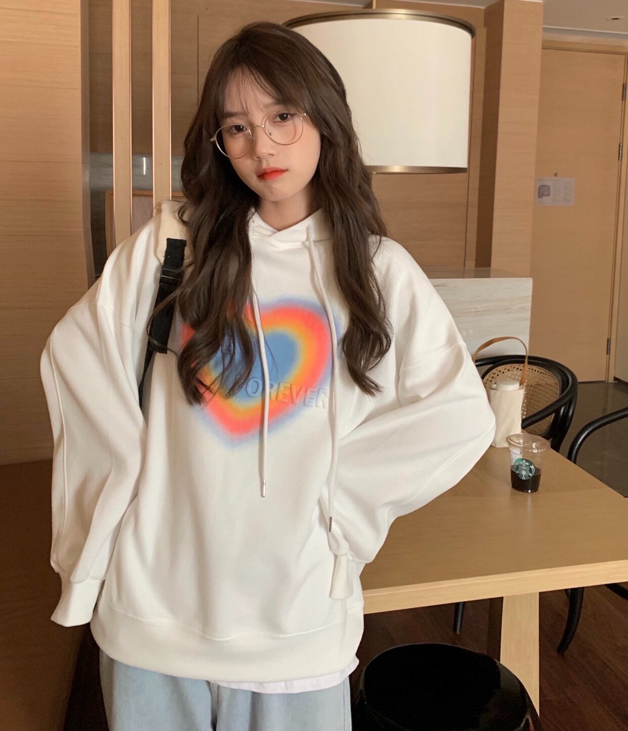Japan SLY College Sweet Girl Rainbow Loving Spray Paint Loose Rope With Cap Sports Jersey
