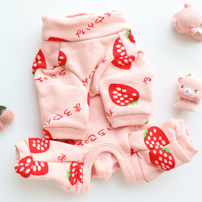 Teddy puppies clothes autumn and winter days clothing online red 2021 new mother dog plus suede thickened with four feet full bag tummy