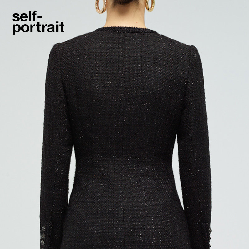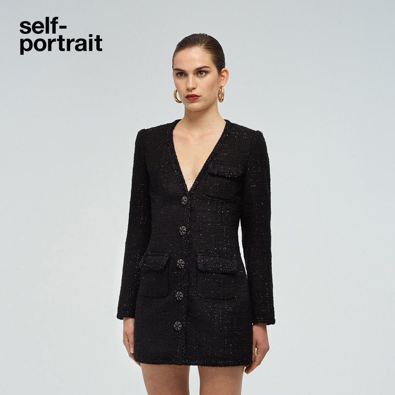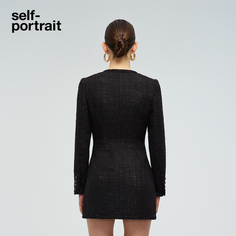 self-portrait classic black slim V-neck small fragrance dress