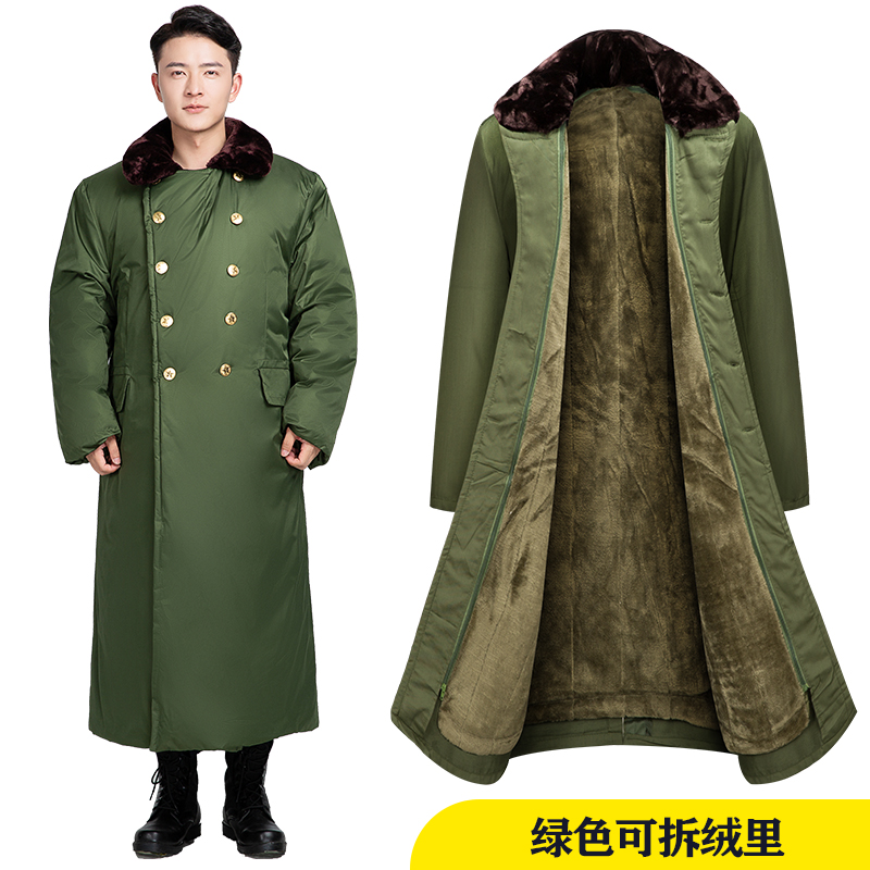 Non-removable extra long green cotton lining coat Super long black cotton lining coat non-removable Extra long green velvet coat non-removable Extra long black velvet coat non-removable Black detachable