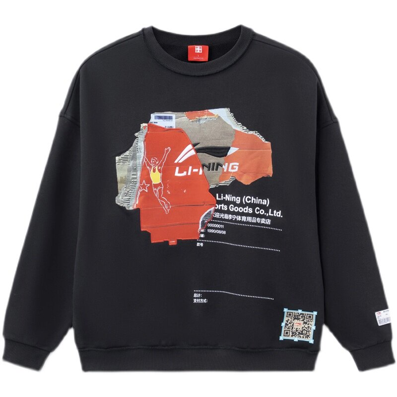 China Li Ning Wade series of male and female identical printed loose pure cotton round neckline jacket head pure cotton casual blouse AHSR919