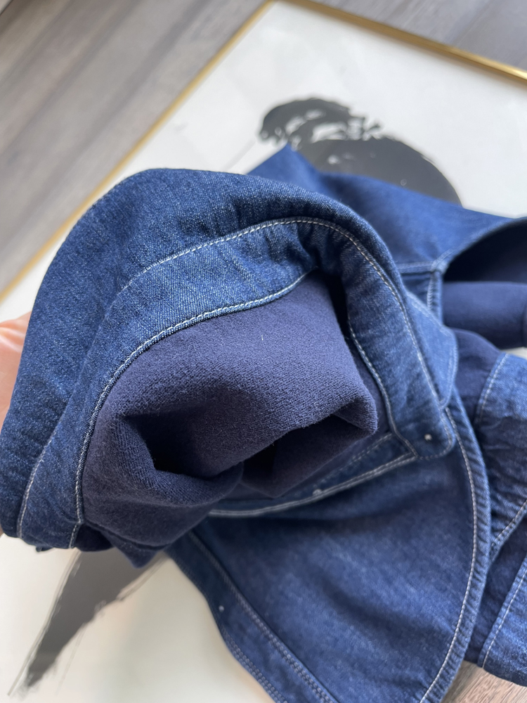 Autumn and winter new bright line dark blue denim shirt women's plus velvet layered retro loose shirt casual top