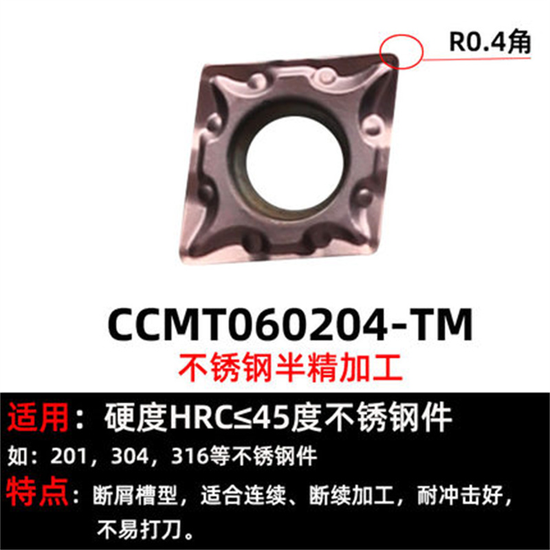 CCMT060204 Stainless steel (semi-finishing) CCMT060204 Stainless steel (finishing) CCMT060208 Stainless steel special CCMT0