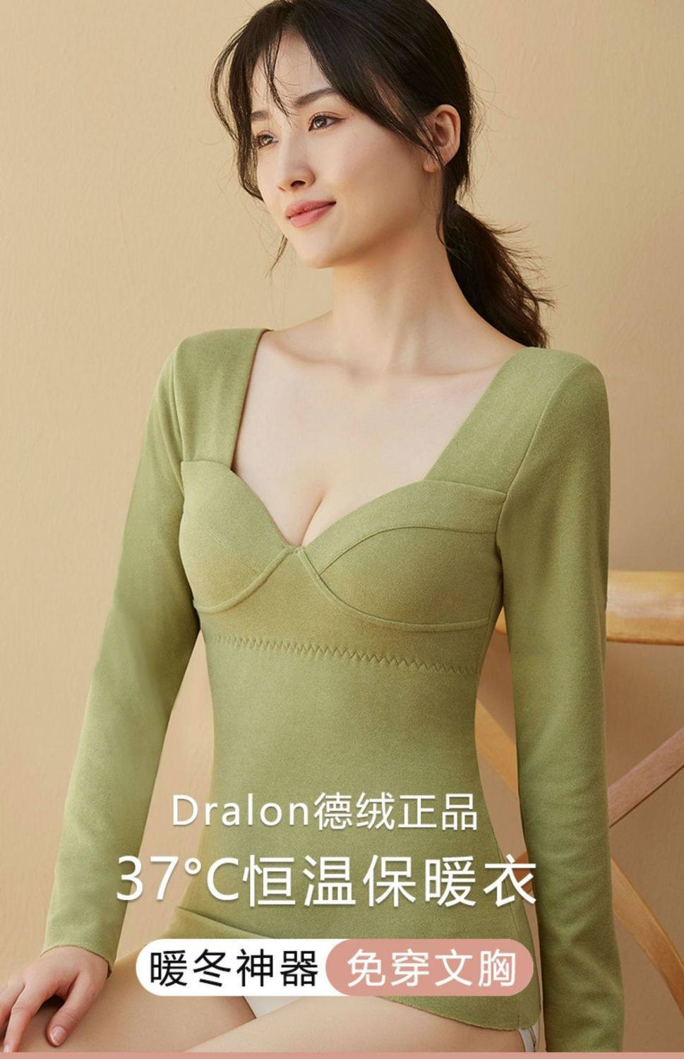Derong seamless goddess clothing thermal underwear women's long-sleeved top with self-heating plus velvet lace autumn clothing bottoming shirt