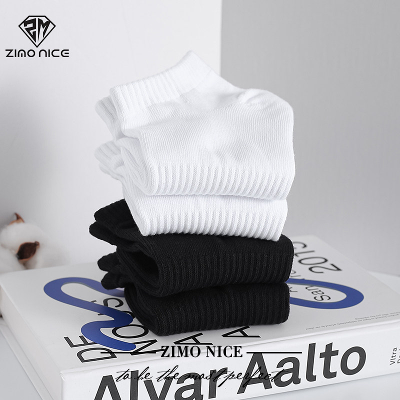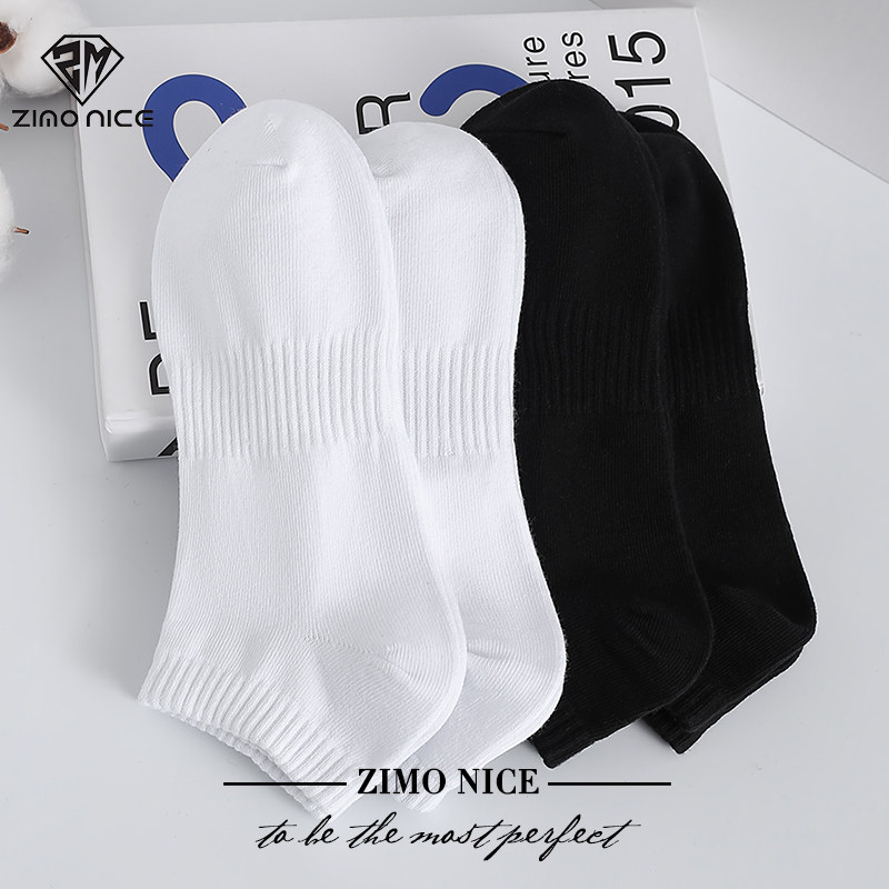 5 pairs of socks men's and women's socks low-top boat socks cotton spring and summer black and white solid color simple versatile business men's socks
