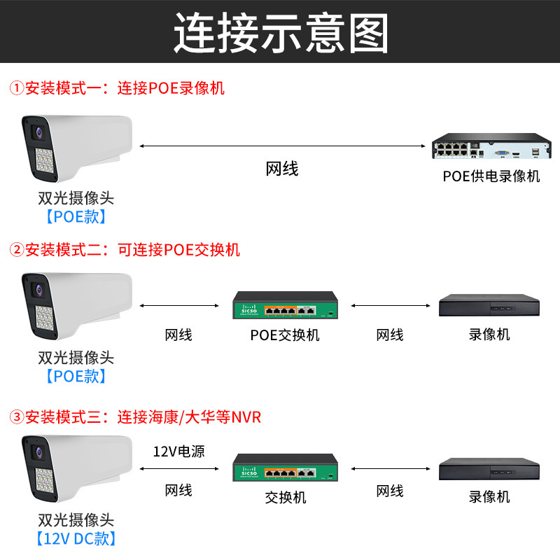 Blue Shield Haikang Outdoor POE Camera Home Outdoor White Light Full-Carnivals License Plate Internet Monitoring Compatible Seacon Dahua 3 million Digital Infrared High Definition Night Vision Watching People Watch Car