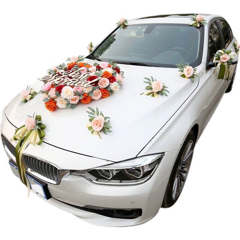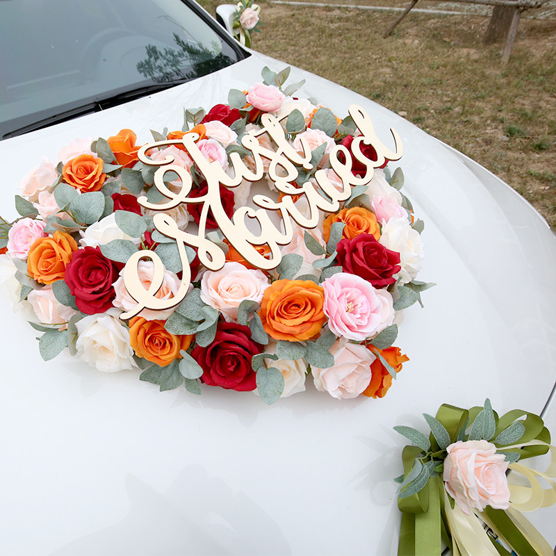 Simulation of champagne Sesen Department main wedding car decoration supplies set flower wedding head car pull arrangement suction cup small red book