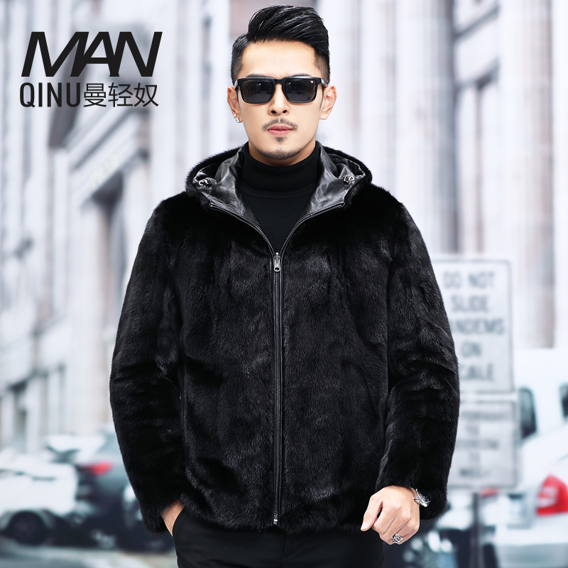 Winter Haining Mink Fur Coat Whole Mink Short Top Layer Cowhide One Hooded Double Sided Mink Fur Coat