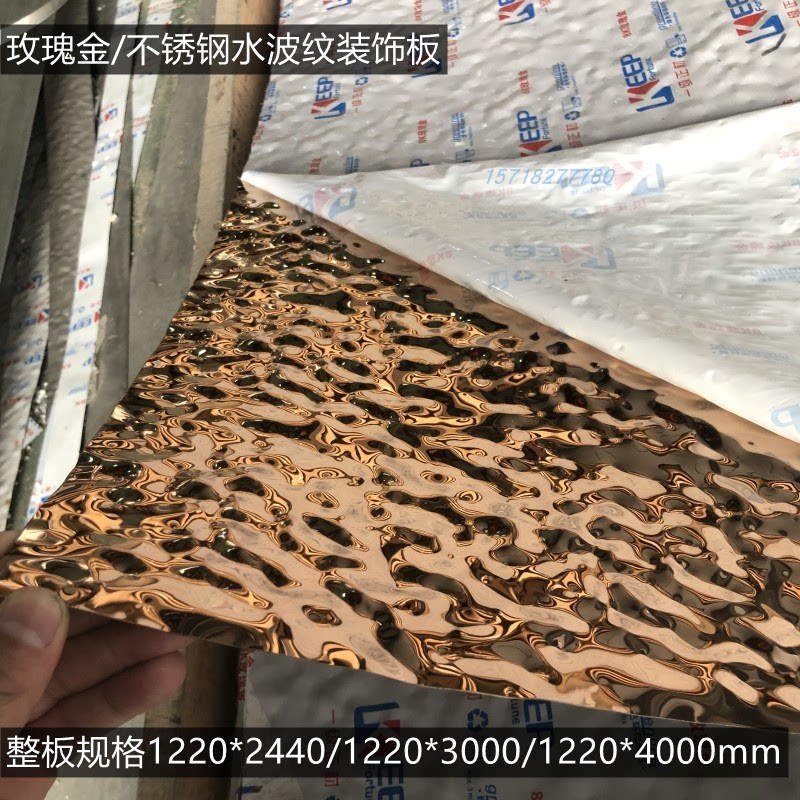 Customized water ripple plate stainless steel 8K mirror 304 black titanium alloy wave convex hotels decoration and processing crop