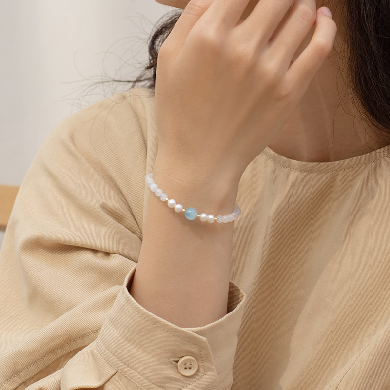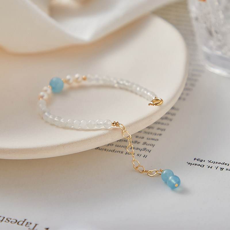 Natural blue moon light stone hand-made female inins small crowddesign natural pearl sea blue treasure beads handstring girl gift
