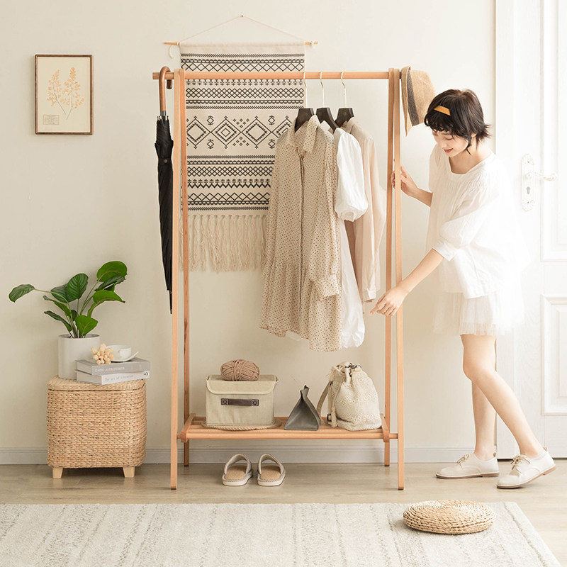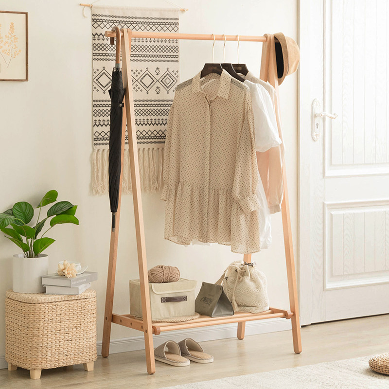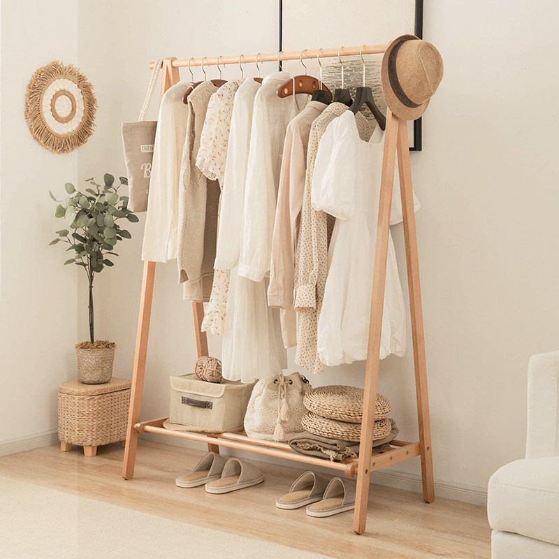 Solid wood clotheshorse with double pole hanger on floor bedroom hanging hanger minimalist modern clothes rack Easy landing hanger