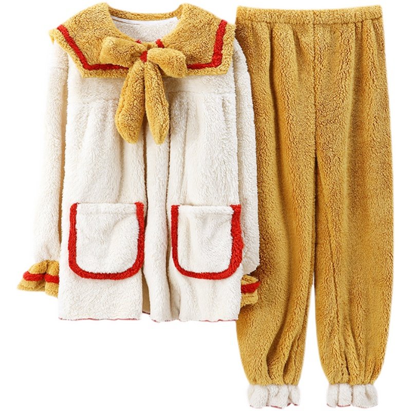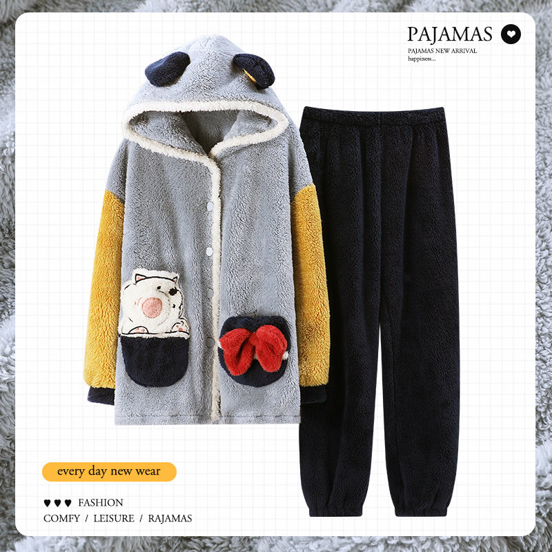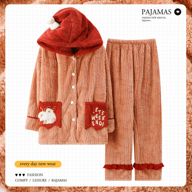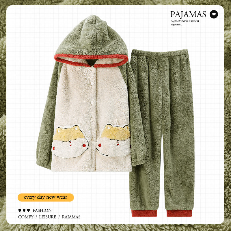 2021 New Flannel Sleepwear Woman Autumn Winter Thickened cute student Coral Suede Spring Autumn Home Suit Suit