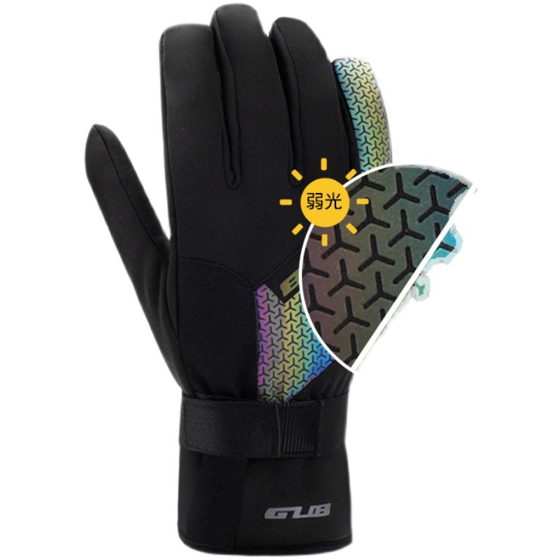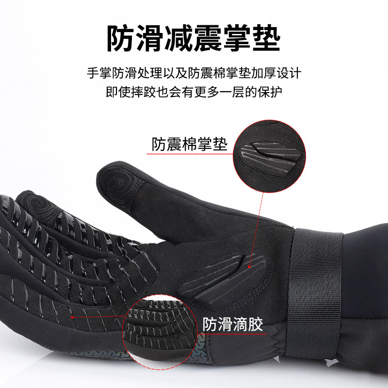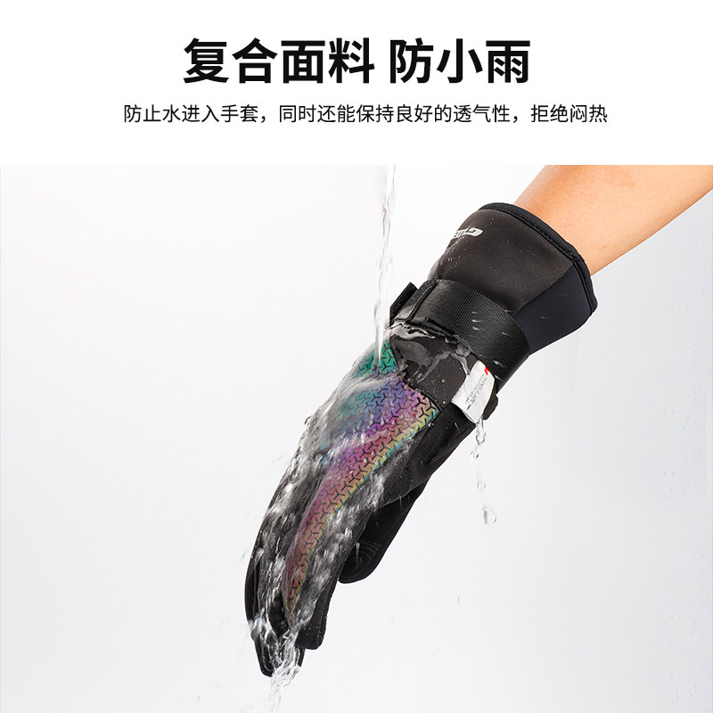 Road mountaineering bicycle riding gloves full finger touch screen winter plus velvet waterproof warm reflective colorful universal