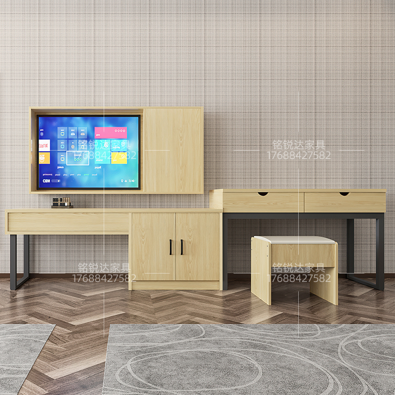 Customized hotel guesthouse tables and chairs combined luggage table furnished with full TV cabinet padding mirror