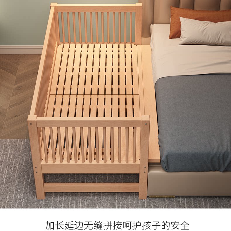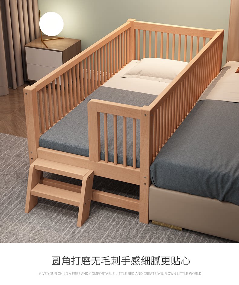 Beech Children's Bed with Fence Boy Splicing Big Bed Wider Bed Bed Boys and Girls Bed Custom Solid Wood Crew