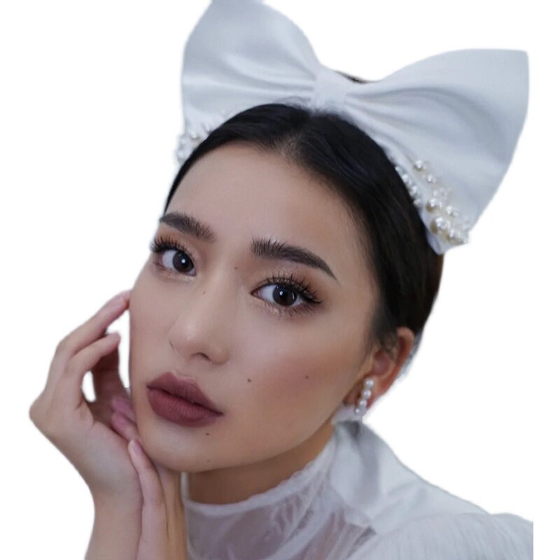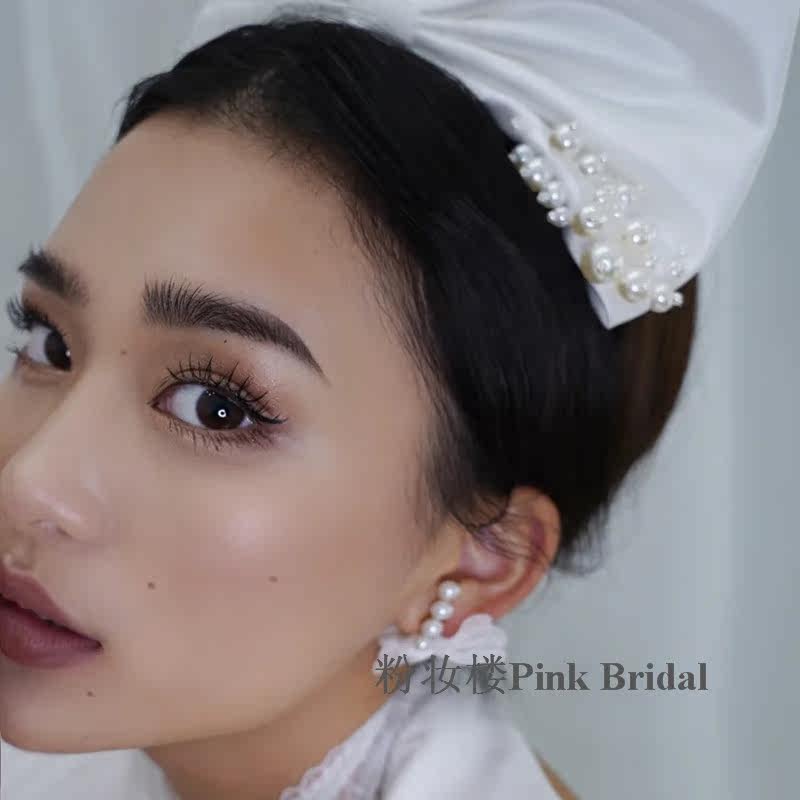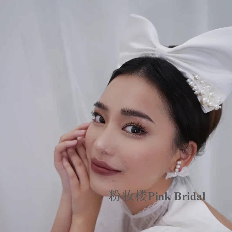 New white pearl satin bow bride wedding photography photo props with makeup veil photo hair hoop