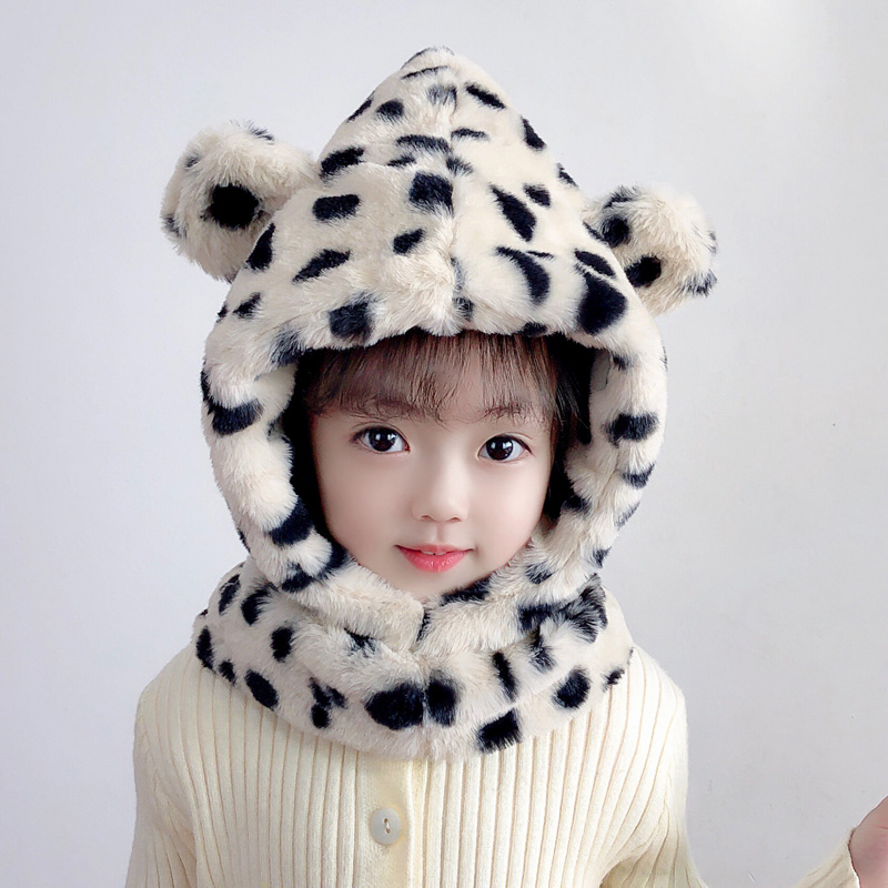 Children's fluffy hats winter boys and girls hats scarf one ear protection face protection warm BAO WEN fashion baby hat tide