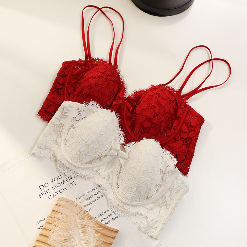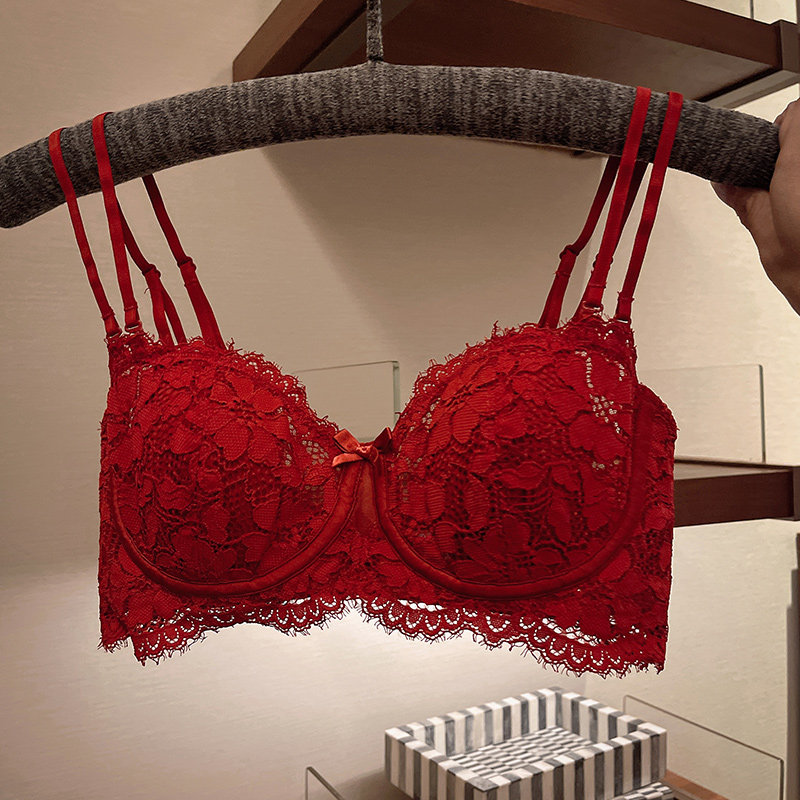 Large chest small chest red underwear married bride ultra thin anti-drop gathered to gather this life year rabbit bra suit