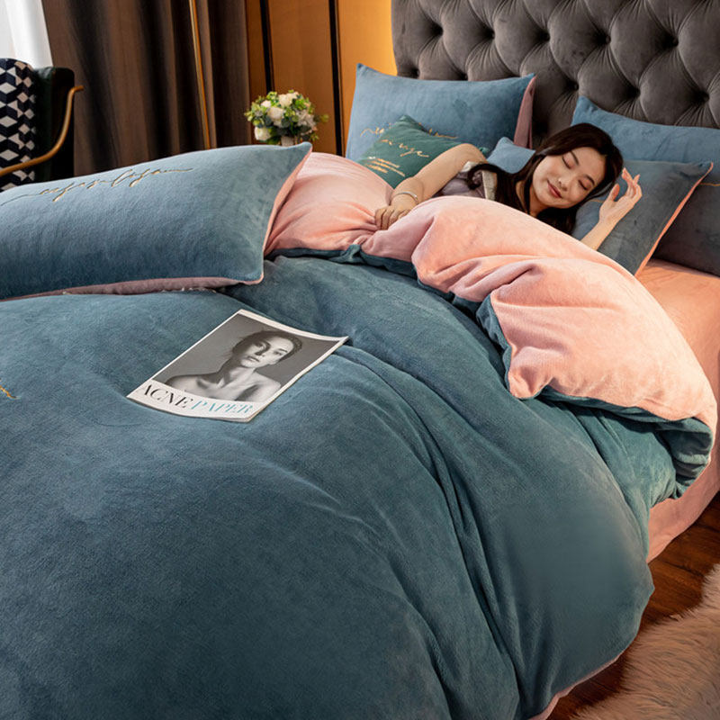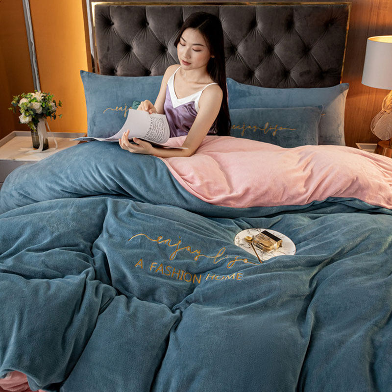 Pure Color Thickened Milk Suede Four Pieces Of Winter Double-sided Suede Bed Linen Quilt Flannel Coral Suede Bed Three Sets