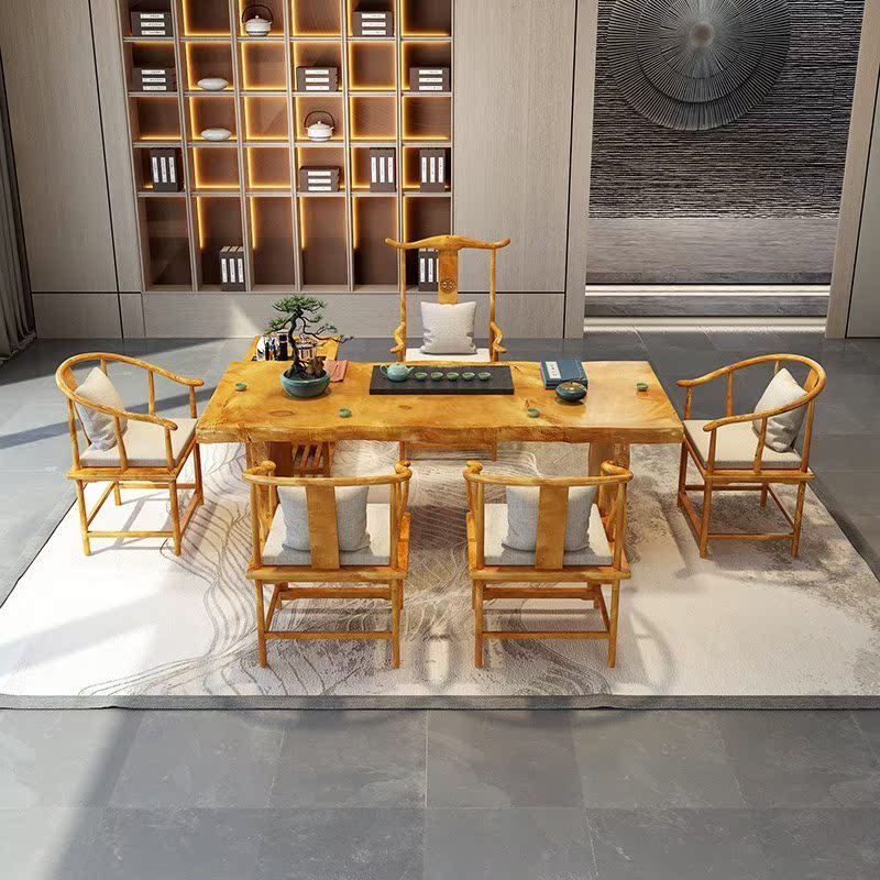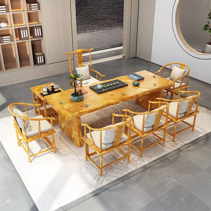 Log large board tea table tea table new Chinese-style solid wood office tea table and chair combination home living room balcony tea table
