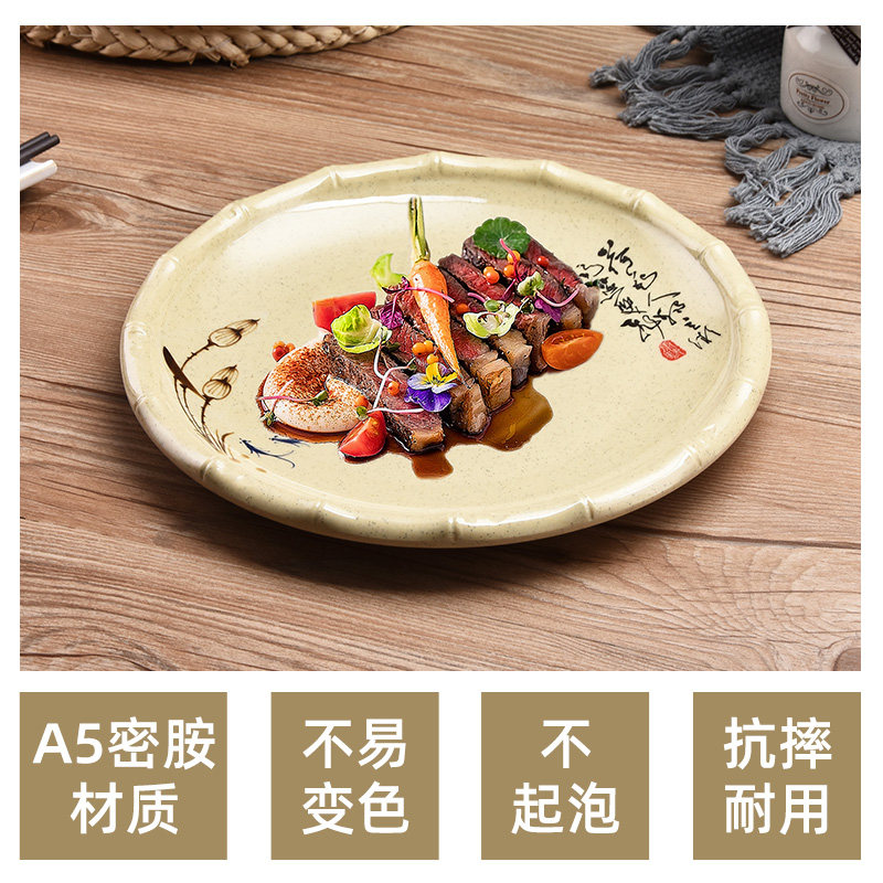 Top Gometamine Resin Plate Imitation Porcelain Cutlery Plate Dining Hall Cover Rice Tray Soup Pan Plastic Saucer Commercial Disc