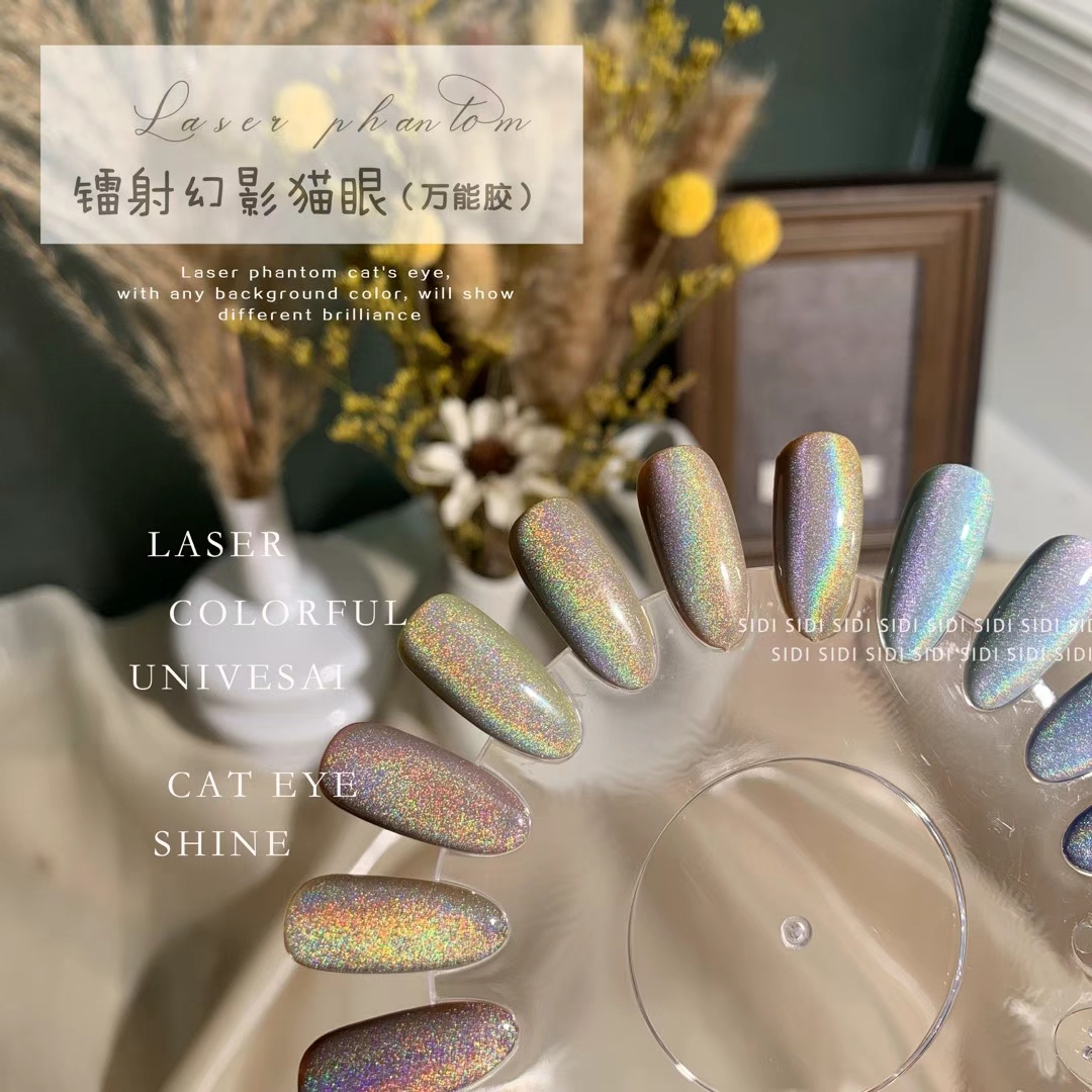 Manicure universal laser phantom colorful spar glare cat eye glue 2022 winter new product magic color nail polish glue