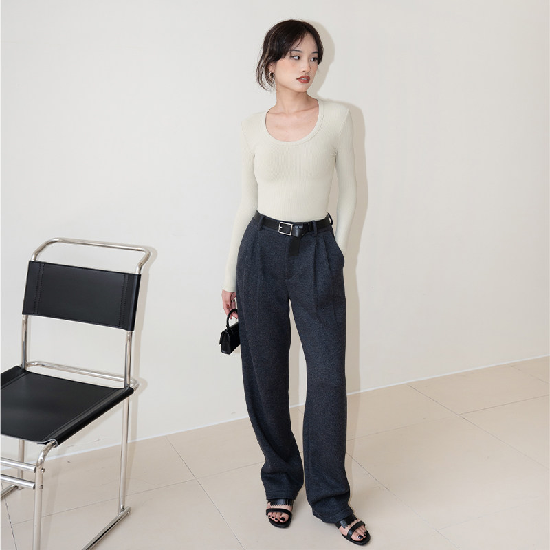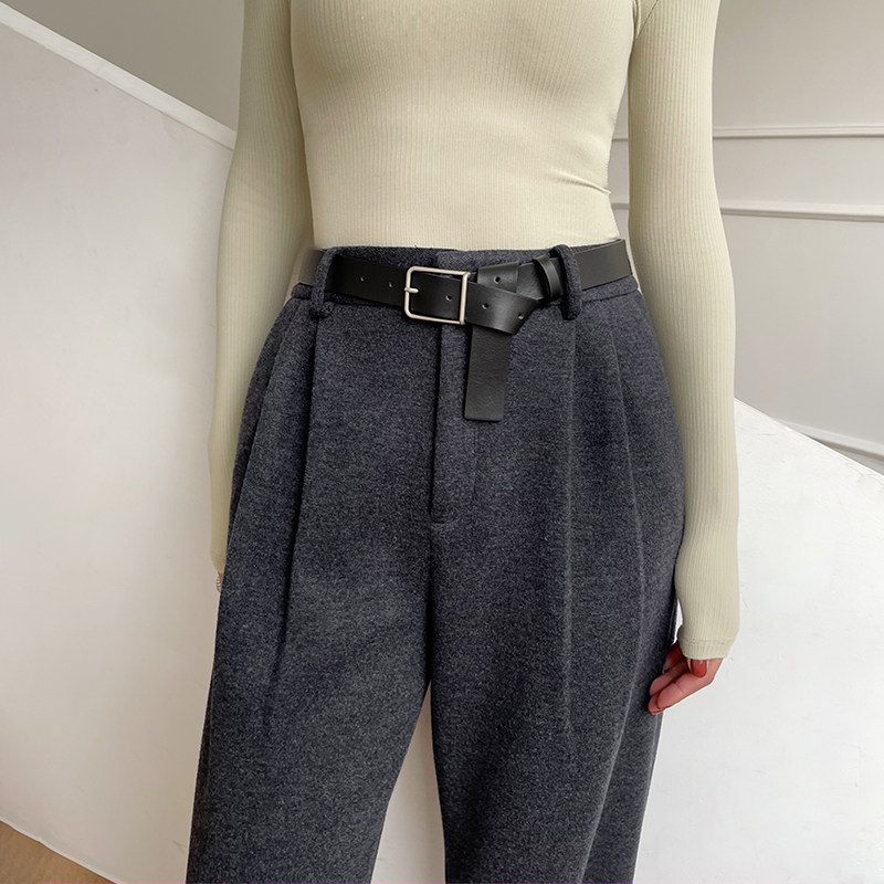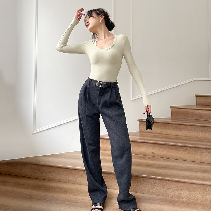 LEIYU woolen suit pants women's 2021 winter new high-waisted loose straight tube thickened textured trousers ins casual pants