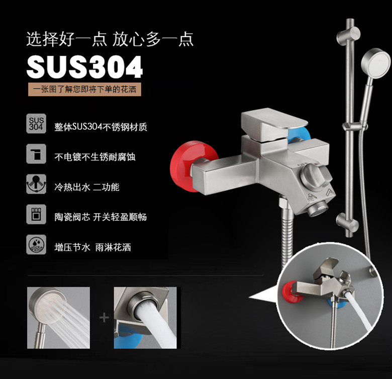 304 stainless steel shower faucet bathroom switch hot and cold water mixing valve concealed triple faucet bath shower head suit