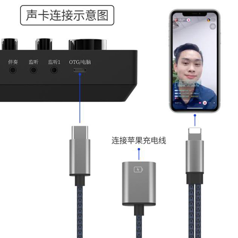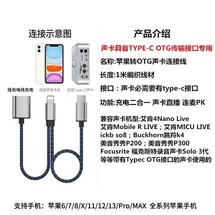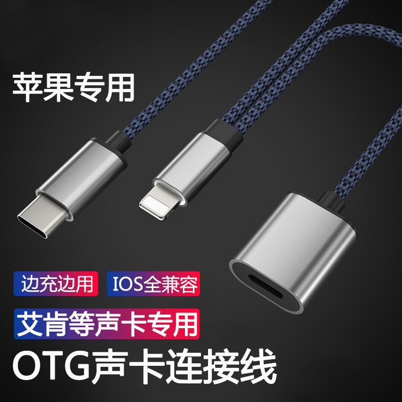 Applicable to Apple live broadcast sound card adapter cable Aiken otg line iPhone12 mobile phone anchor live broadcast converter lightning to typec charging icon4 even wheat pk