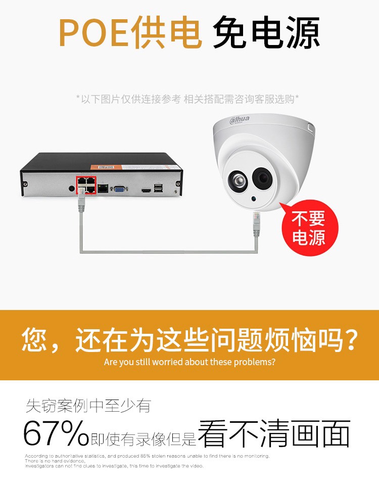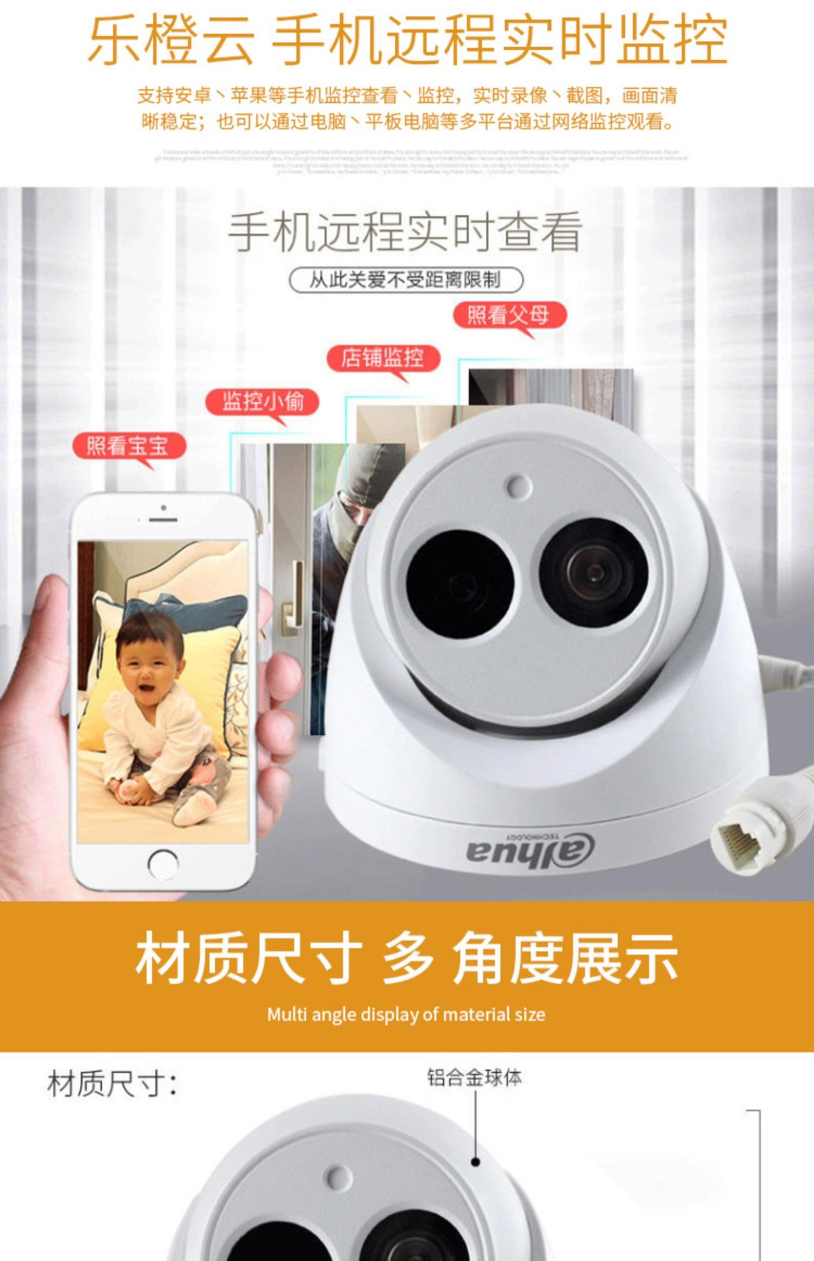 Dahua surveillance camera lens 2 million 4 million network high-definition infrared night vision recording POE indoor hemisphere 1080P