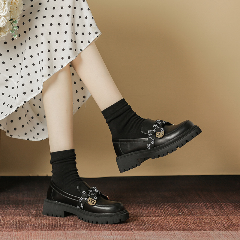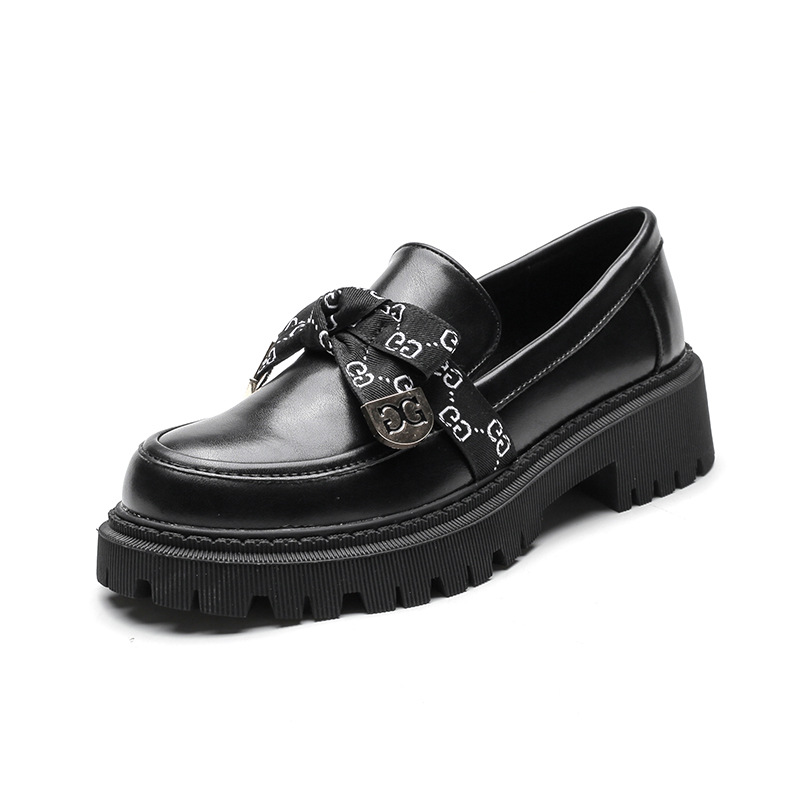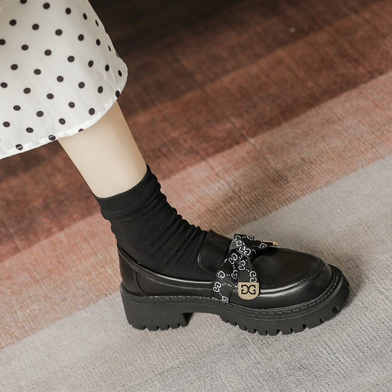 Inner heightened small leather shoes women's British style 2022 spring and autumn all-match bowknot thick-soled loafers thick-heeled single shoes women
