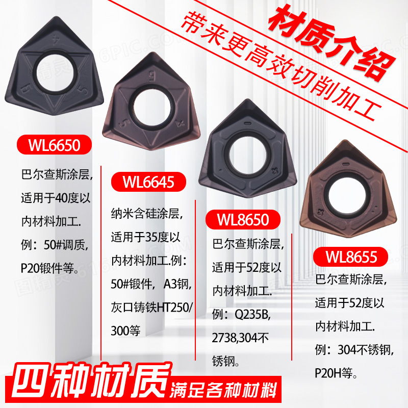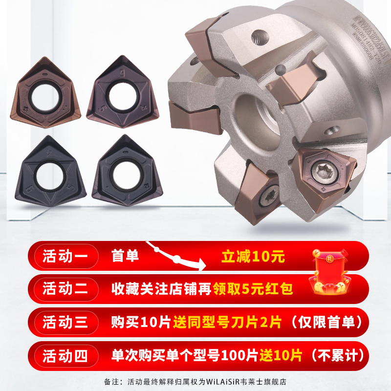 Numerical control milling cutter sheet WNMU0806 blade double sided hexagonal fast feeding blade 90-sided 6-angle milling cutter sheet