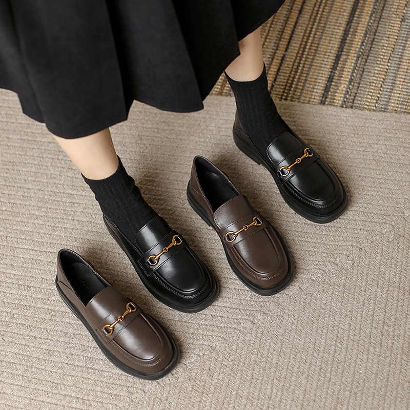 Plus velvet small leather shoes women's 2023 new four seasons British style loafer women's shoes student shoes thick-soled black single shoes