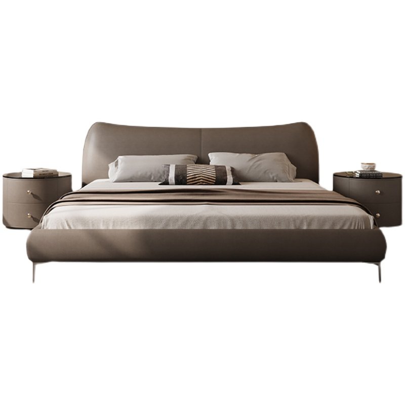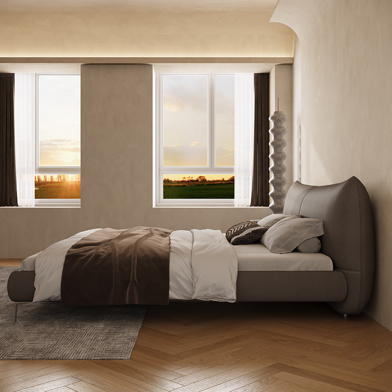 Wabi-sabi bed Italian style minimalist leather bed small apartment double bed 18 meters simple modern master bedroom marriage bed leather bed