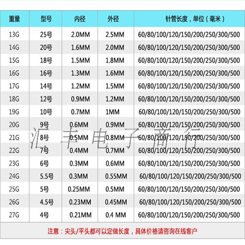 Number 5 25G pipe length 200mm flat mouth fine outer diameter 0 5mm 6 Number 23G pipe length 200mm flat mouth outer diameter 0 6mm 22G 7 length