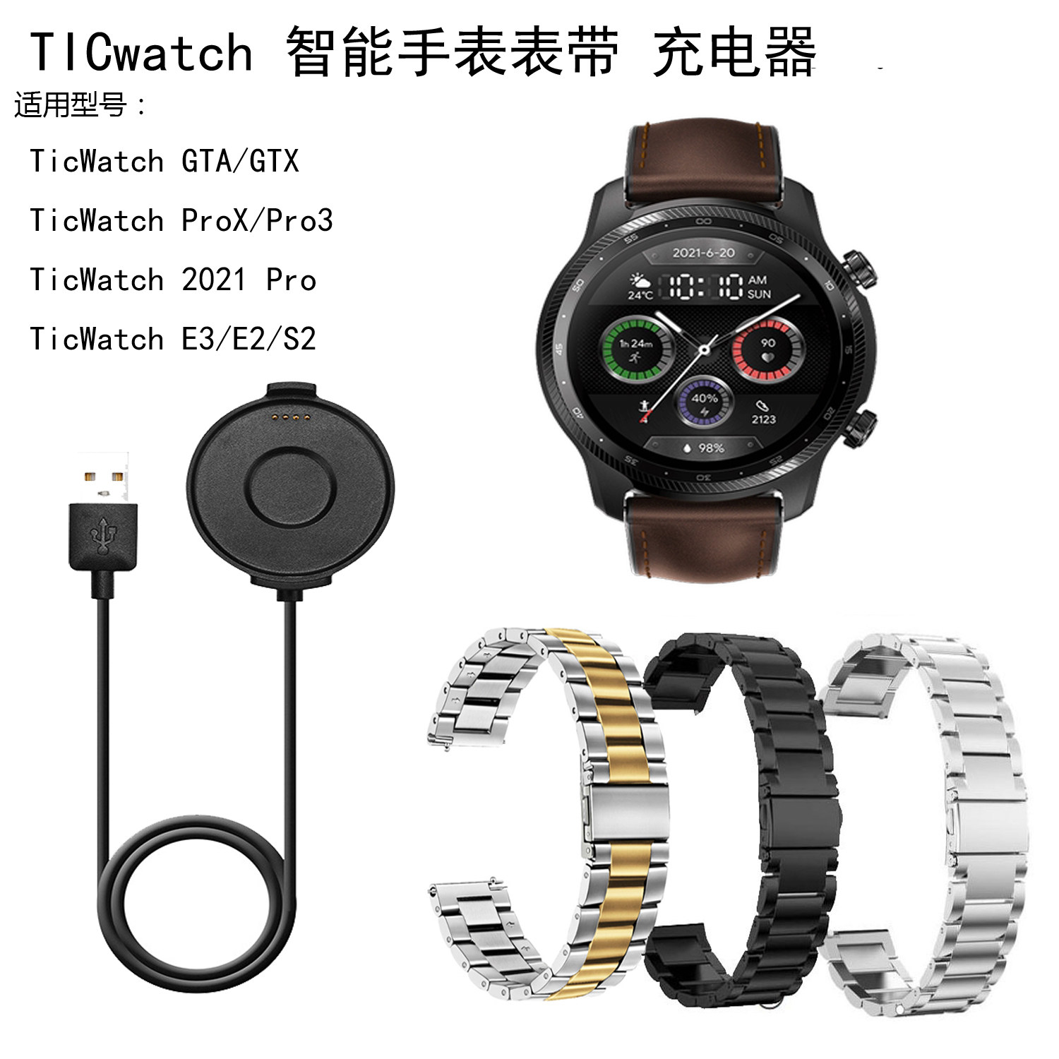 Suitable for TicWatch E3 Pro3 charger mobvoi Pro 3 LTE charging cable E2 charger strap