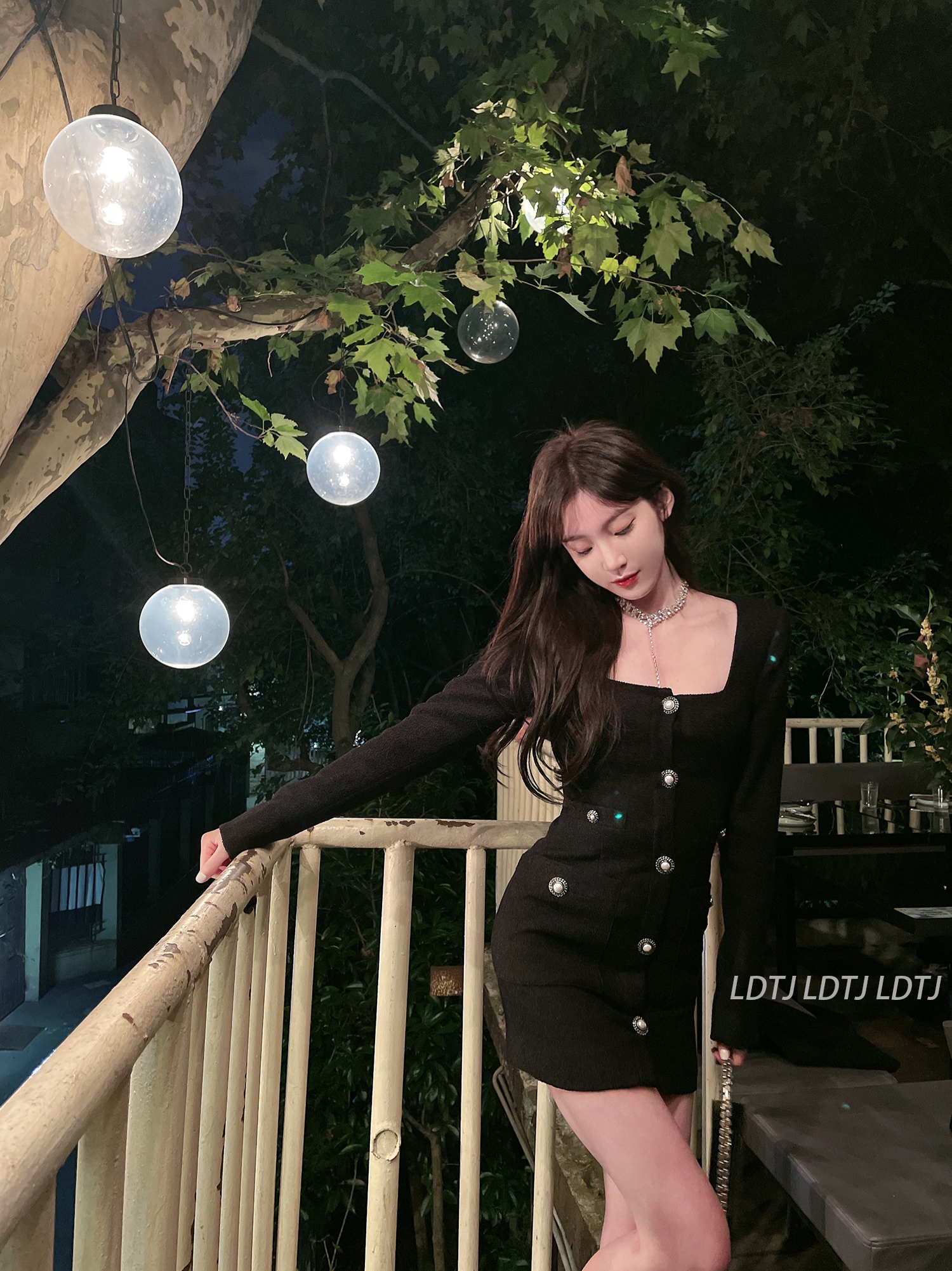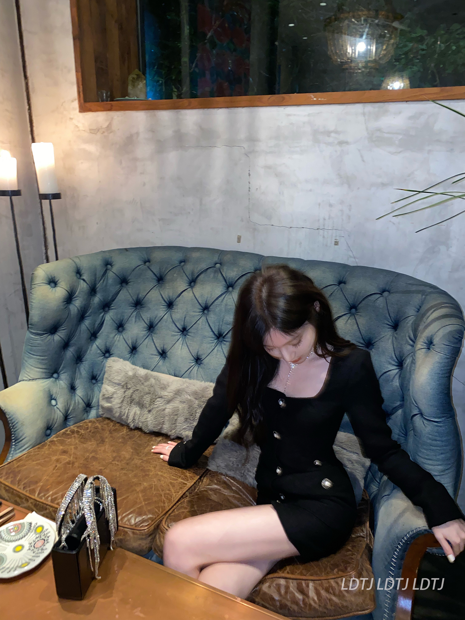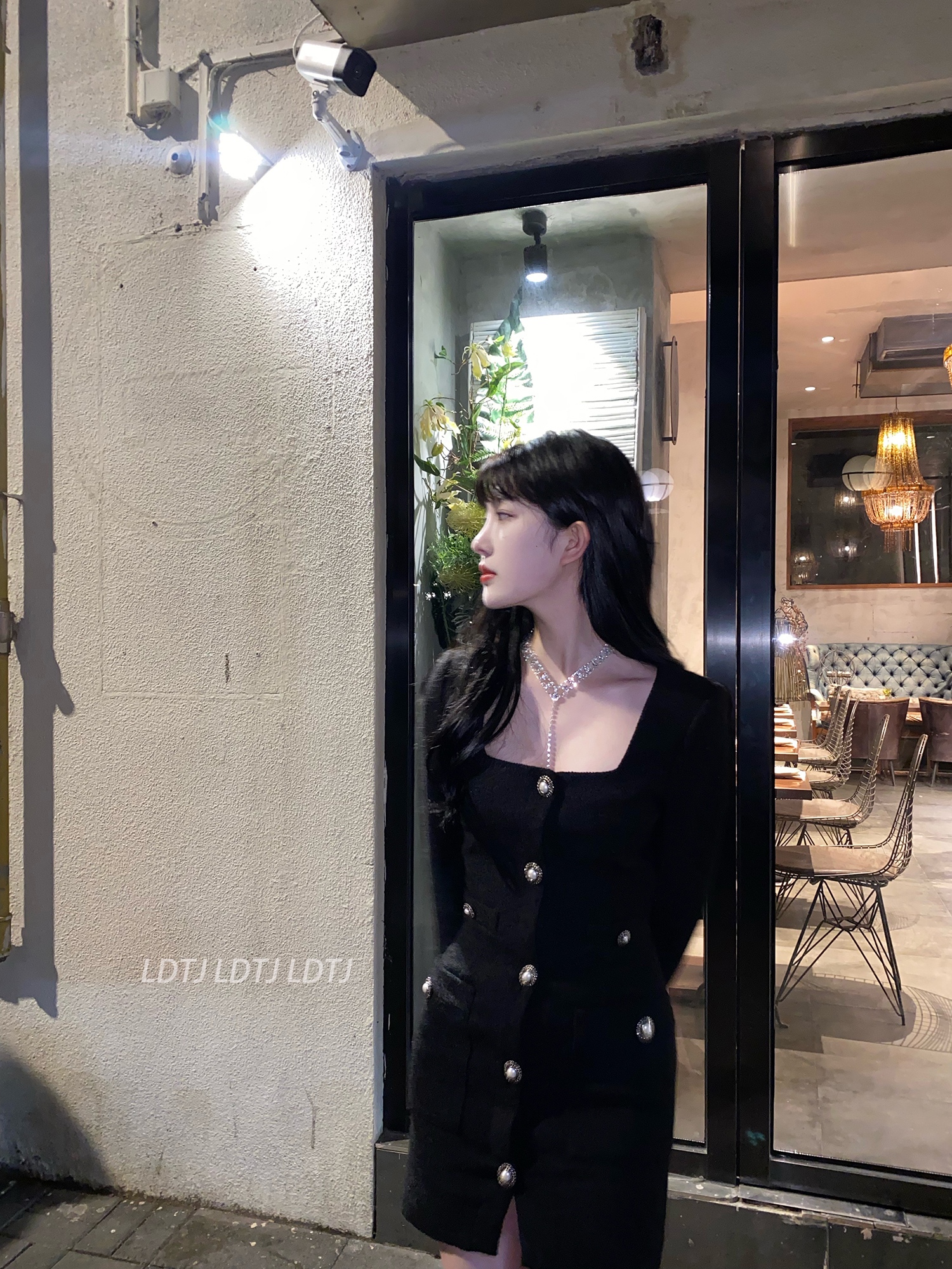 LDTJ spot 2022 winter and spring new long-sleeved black dress women's senior woolen coat temperament short skirt
