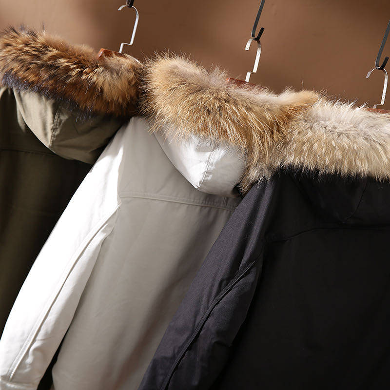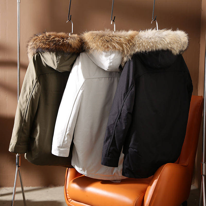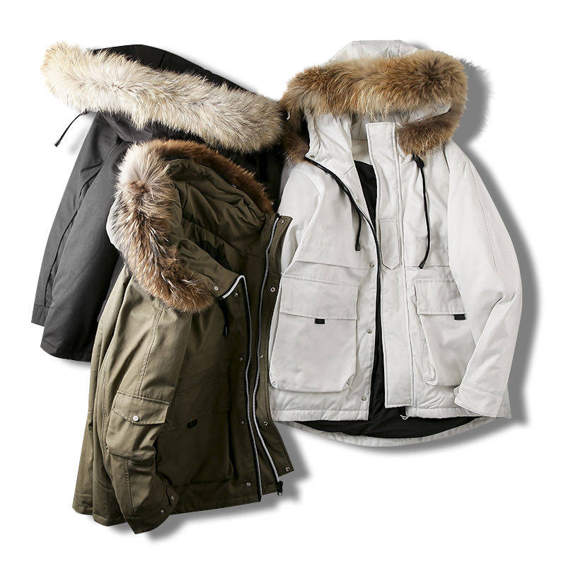 ODM company goods, men's super value, oversized^real raccoon fur collar, 90 white duck down business style, overcoming the trend of down jacket