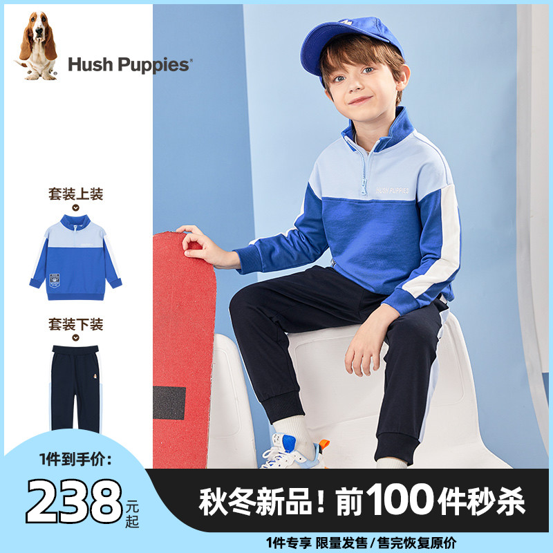 Leisure Steps Children's Clothing Boy Casual Suit 2022 Autumn Clothing New Children's Cover Bump Color Thick Cotton T Big Child Sports Pants