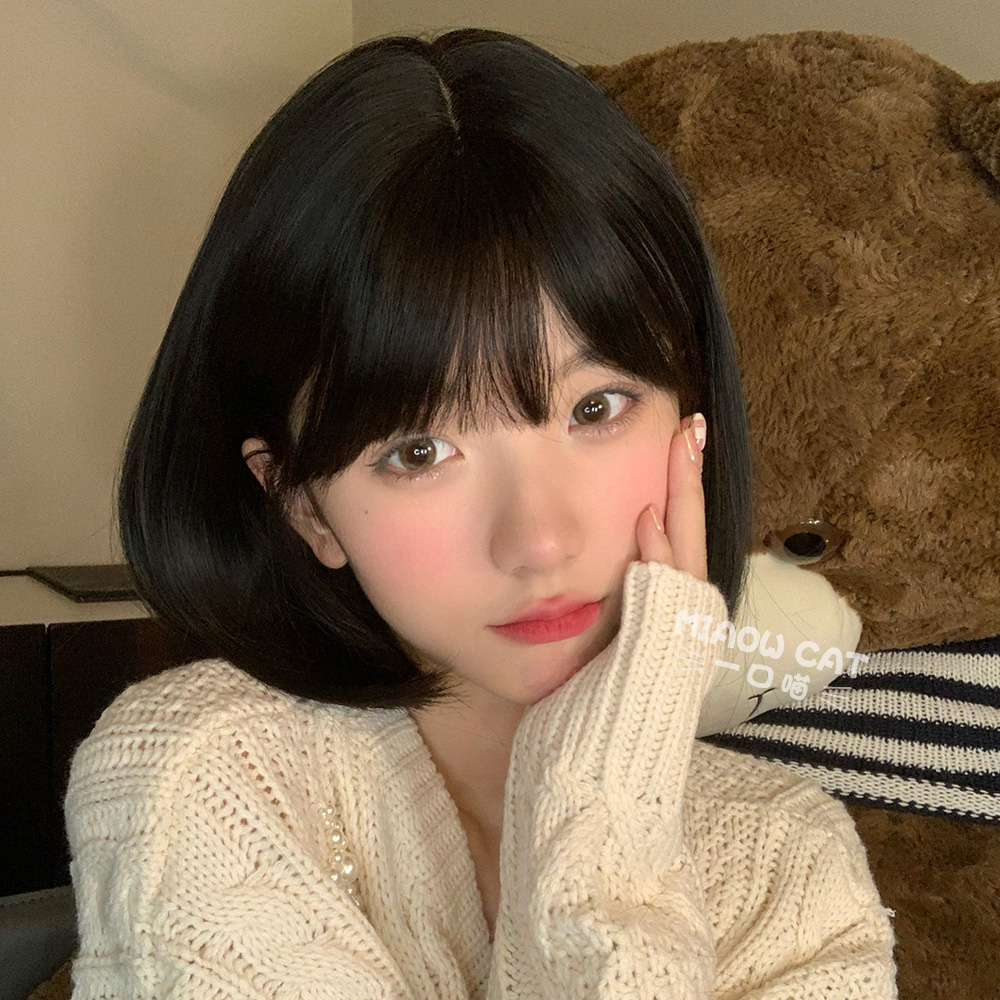 A meow daily natural short hair jk universal net red bobo cute lolita realistic bangs full headgear wig
