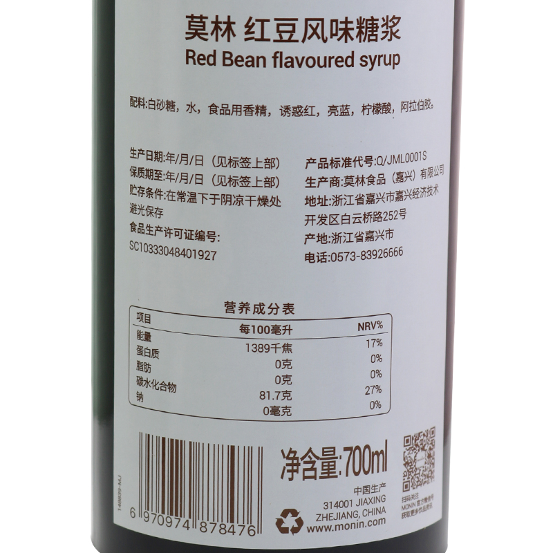 MONIN Molin Red Bean Flavored Syrup 700ml Coffee Cocktail Juice Drink Special for Baking