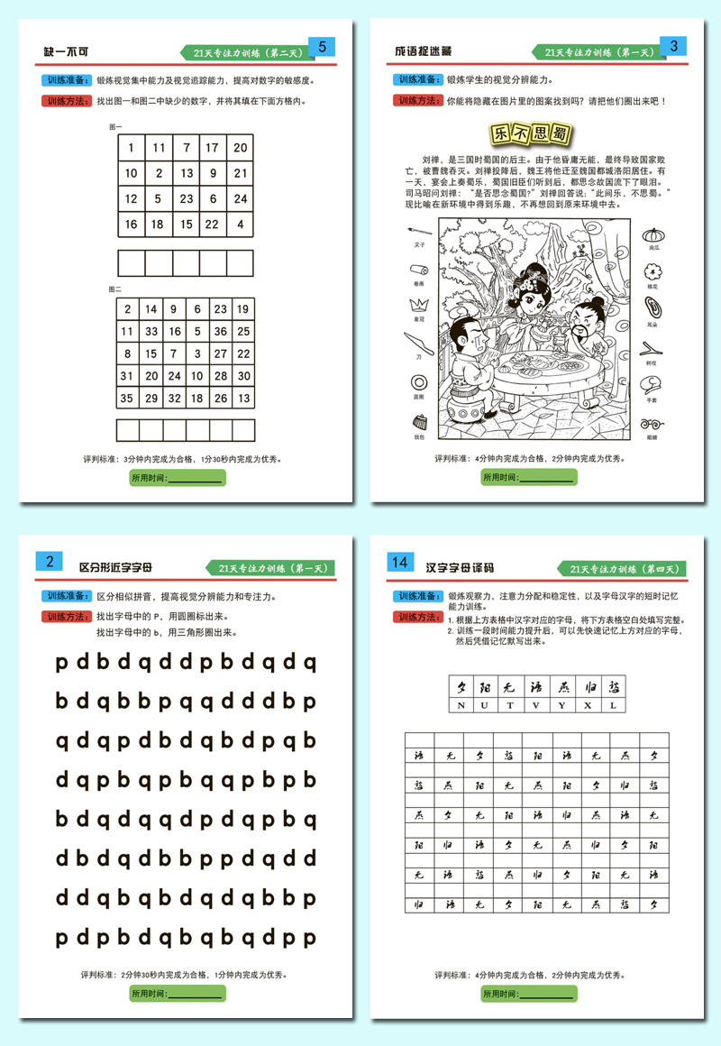 Auditory visual attention 5-12 years full family training 42 days dedicated to memory Early teaching decoding card