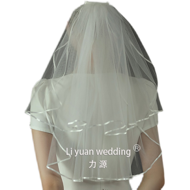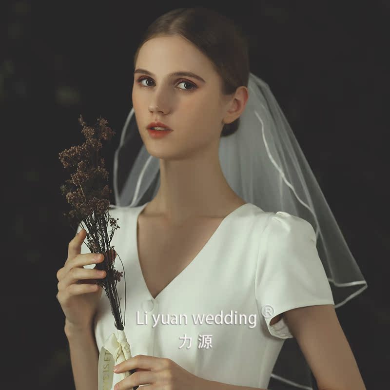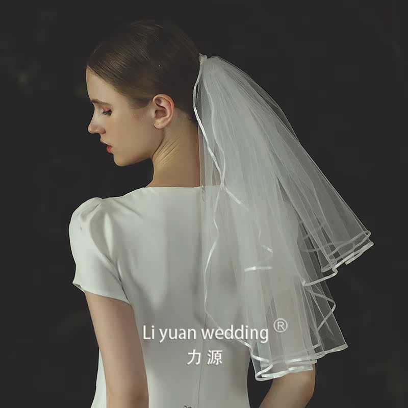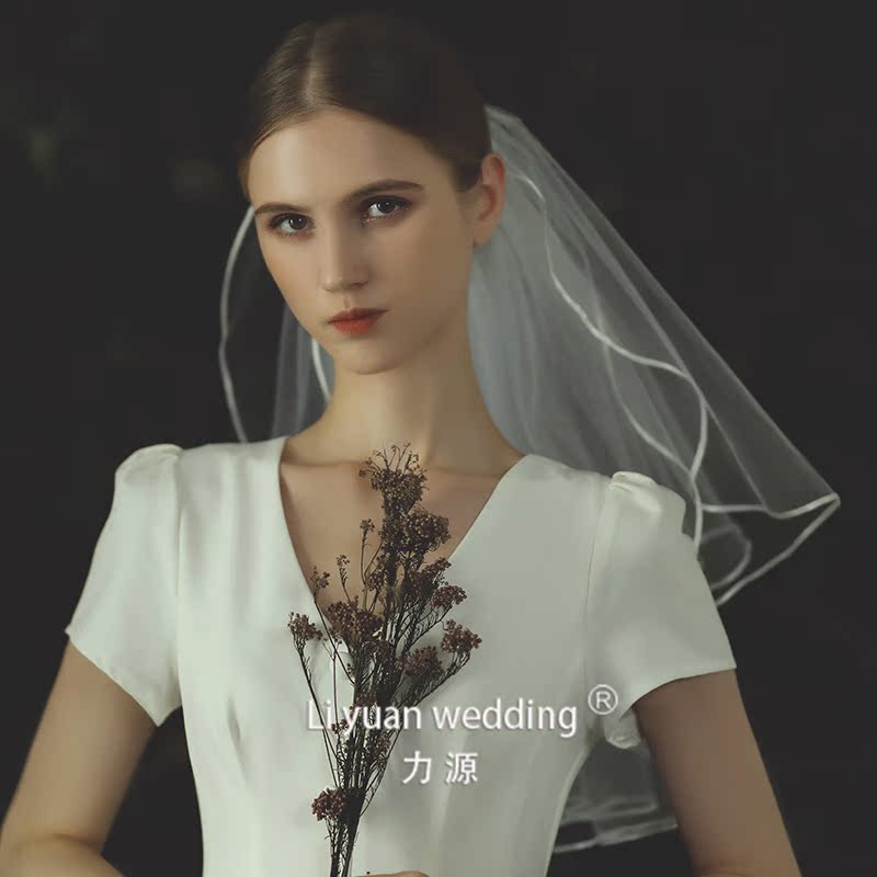 Force Source New Bride Double double Short Head Yarn Korean satin lace with edge hair accessories Selfie Wedding dresses Self-shooting wedding dresses