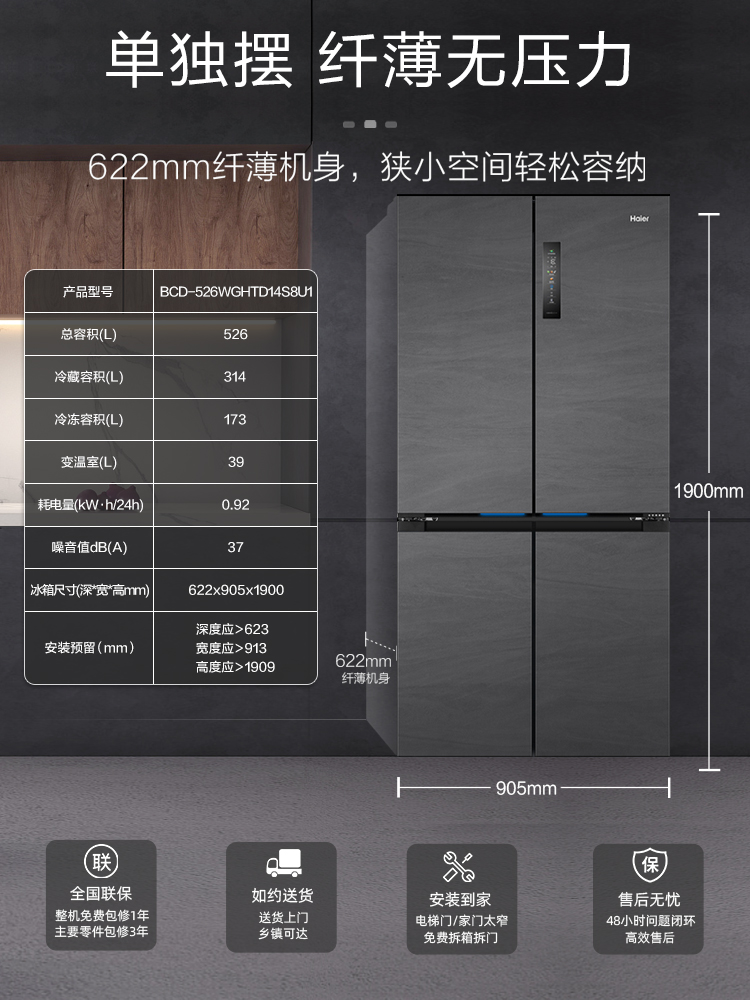 Haier Refrigerator 526L Large capacity Cross to open door ciliary embedded full space refreshing air-cooled No cream Home