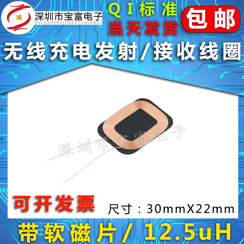 Wireless charging receiver coil 12.5uH 30mm*22mm QI standard wireless charging receiver single coil