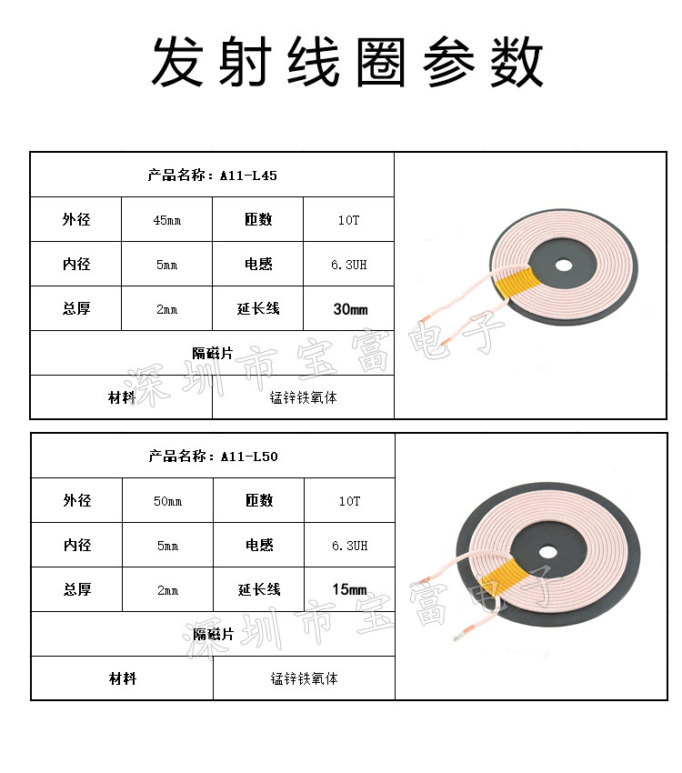 Receiving coil (12.5uH 30mmx22mm)Transmit coil (diameter 45mm)Transmit coil (diameter 50mm)